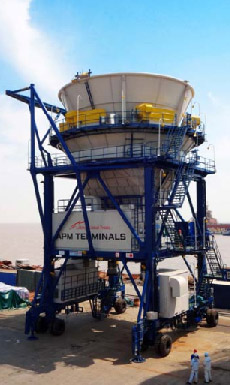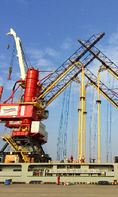 潤邦股份自主設計研發的移動港口起重機(簡稱MHC),可裝卸各類雜貨(如木材、結構件)、散料(如煤、糧食)和集裝箱等貨物。產品配備了先進的防貨物偏擺、晃動控制系統,充分保證了裝卸效率和貨物的安全。