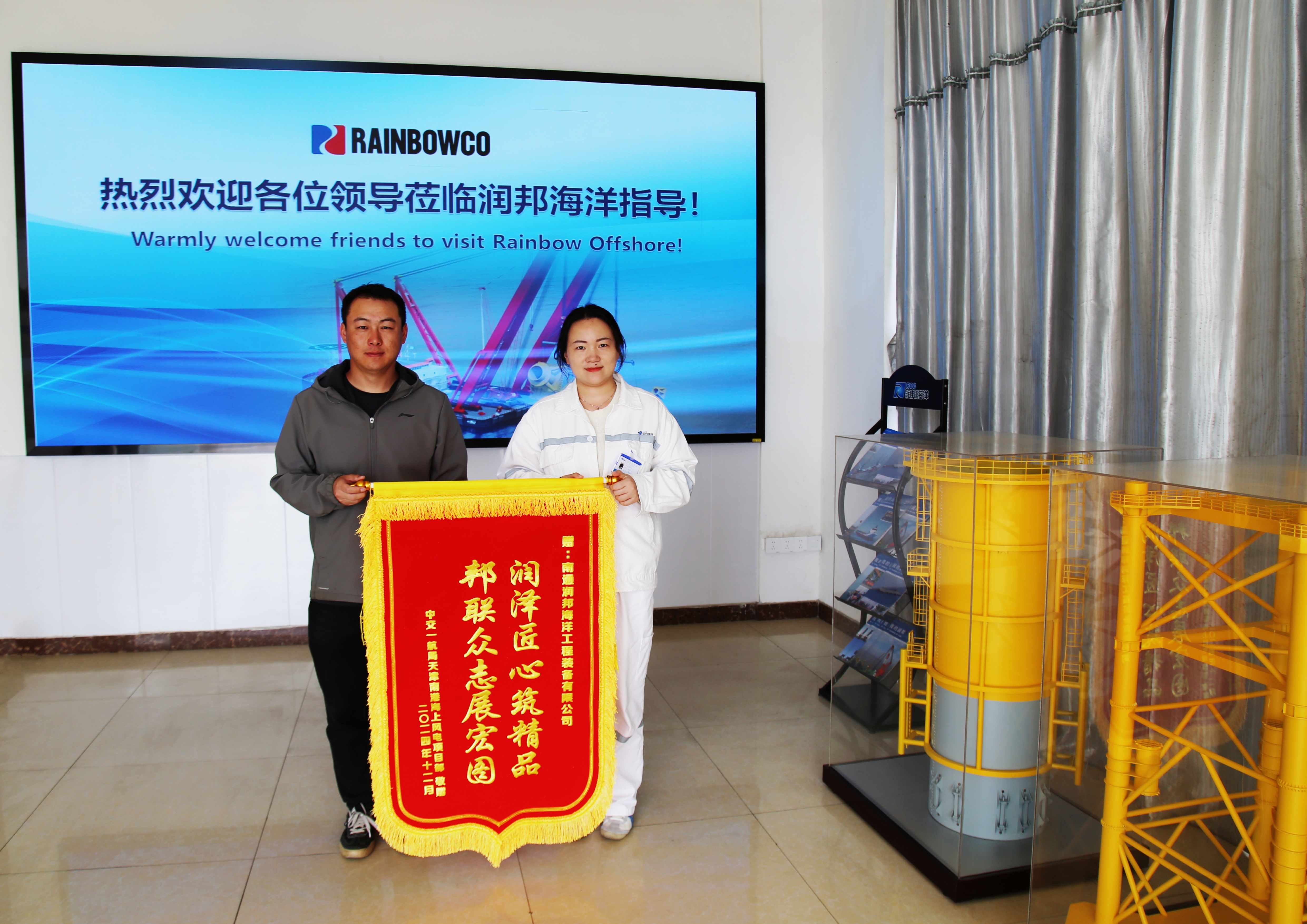 近日,子公司潤邦海洋收到中交一航局天津南港海上風電項目部贈送的錦旗,這一榮譽不僅是對潤邦海洋在海上風電項目建設中卓越表現的肯定,更是雙方長期合作、攜手共進的有力見證。
