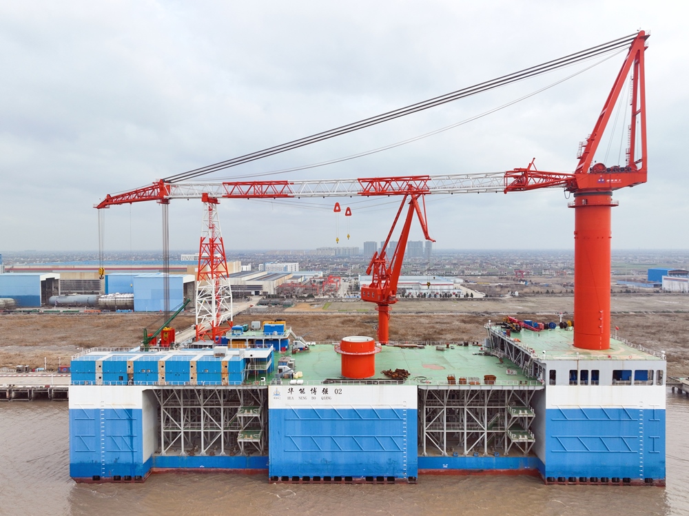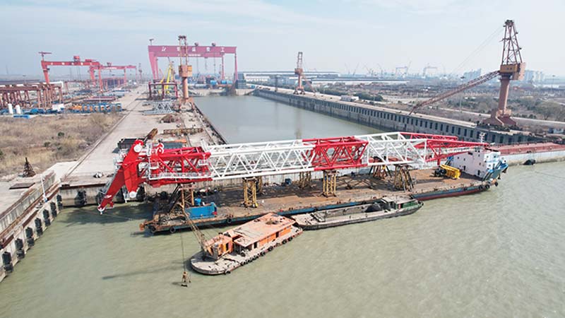 近日,子公司潤邦重機為上海博臻航務工程有限公司設計建造的一臺GENMA 800噸全回轉海洋風電安裝起重機(簡稱:海洋起重機)順利交付。